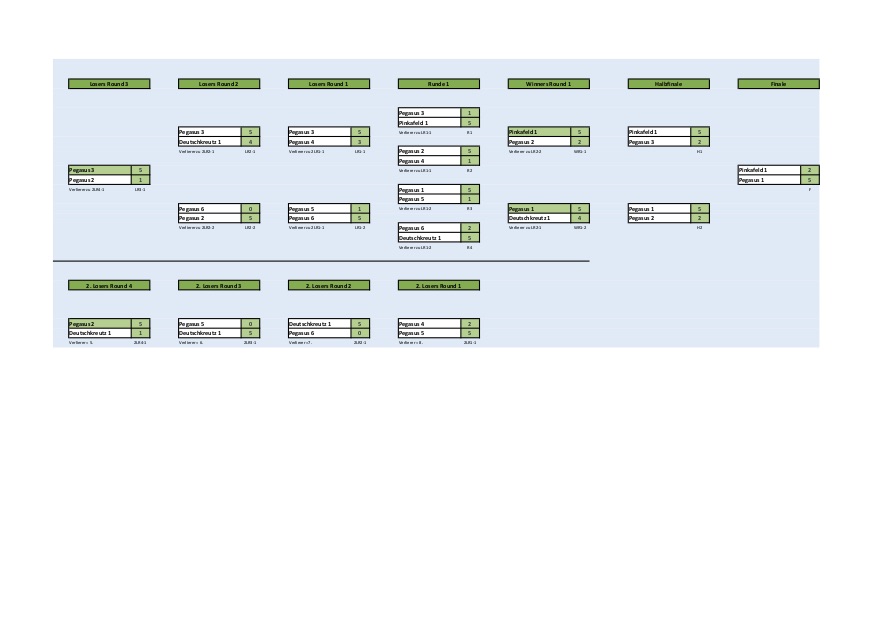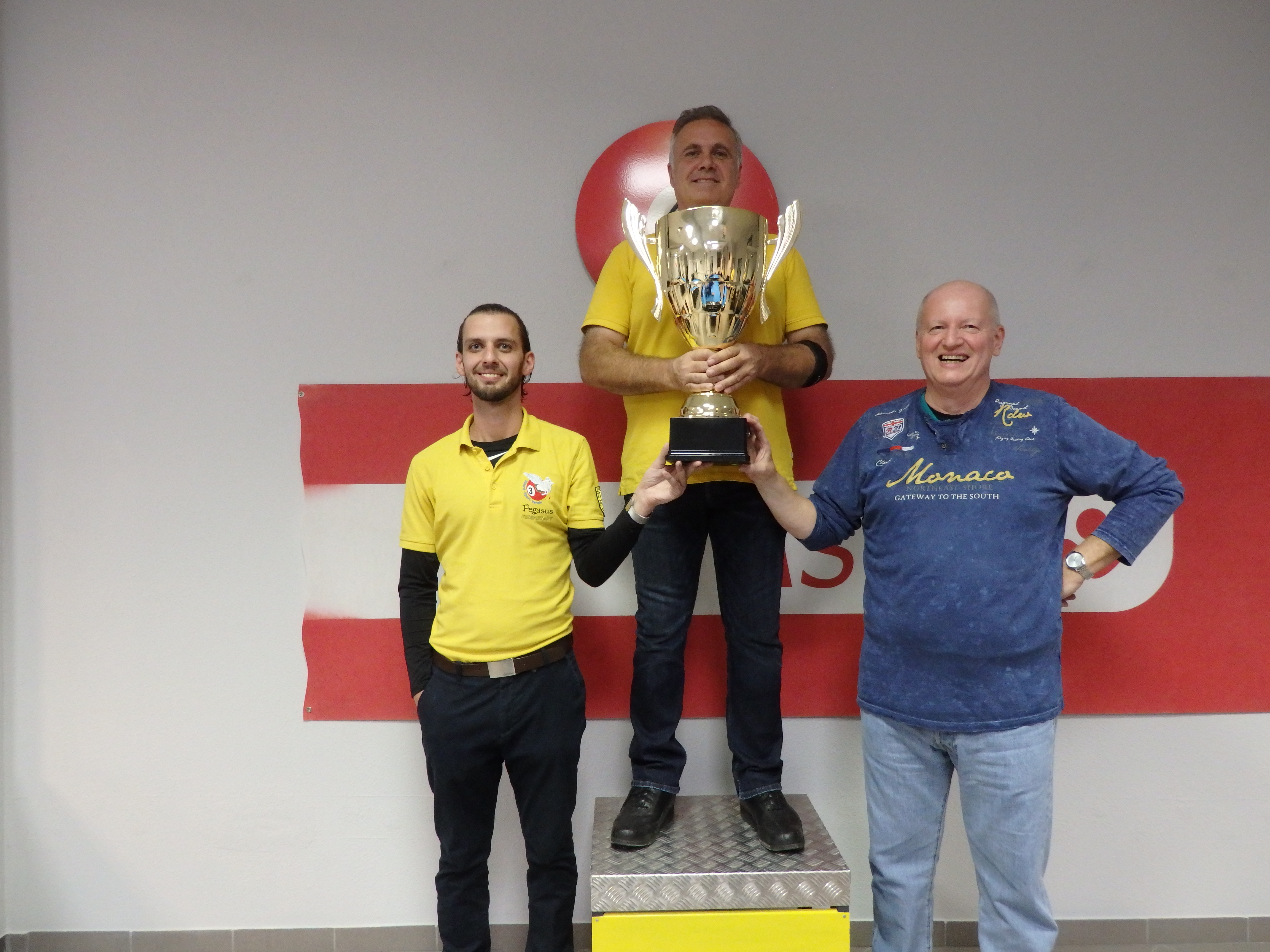 Den Sieg holte sich Pegasus 1 vor Pinkafeld 1. Auf die beiden dritten Plätze spielten sich Pegasus 2 und Pegasus 3. Mannschaftsführer Johann Schernthaner, flankiert von seinen beiden Mannschaftskollegen Klaus Profunser und Andreas Melinte, stemmte zur Siegerehrung den Wanderpokal in die Höhe. Die eigens mit Namen gravierten Medaillen für die Plätze 1-3 werden zum Saisonabschluss vergeben.